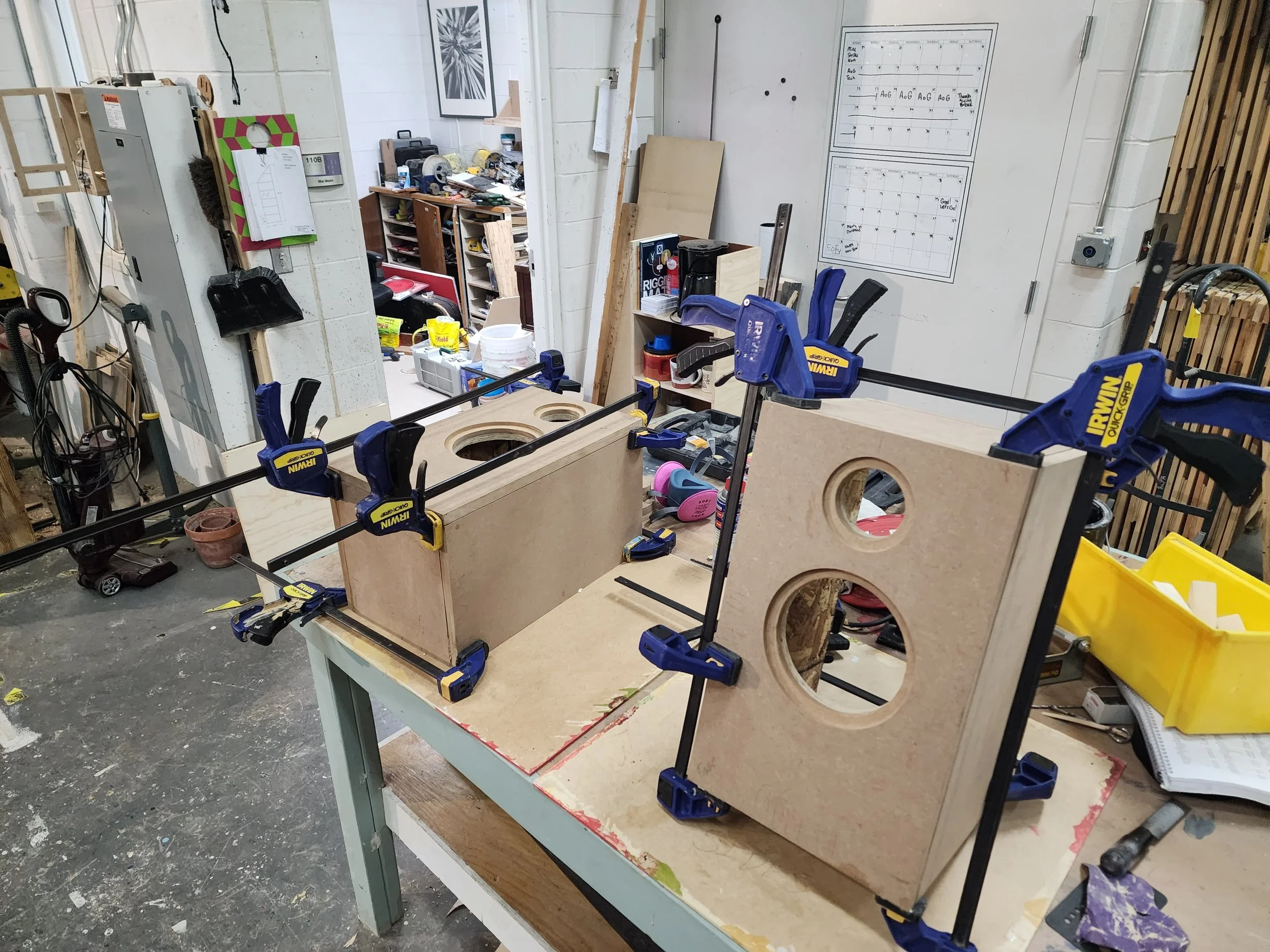 Designed, fabricated, measured, and tuned a pair of two-way monitors for forward listening and mixing.